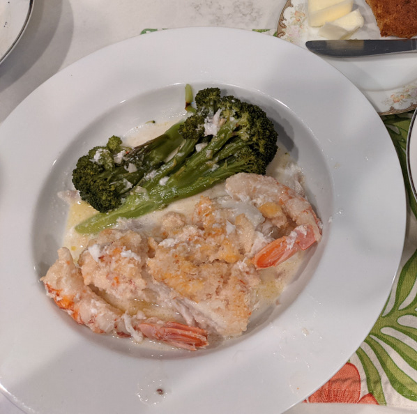 Using your hands, cover the top of each haddock portion with the shrimp mixture. Nestle the shrimp covered haddock into the casserole dish with coconut milk leaving the shrimp topping exposed.