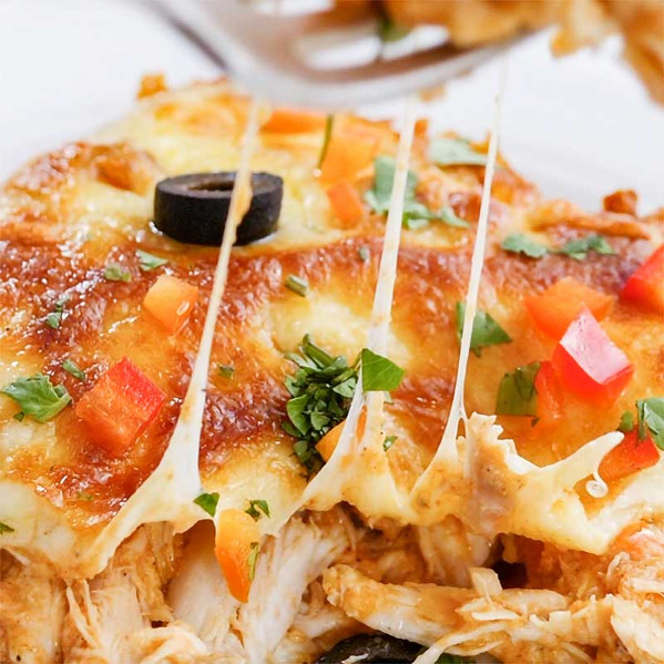 - Serve sprinkled with the reserved peppers, olives, and cilantro. Enjoy!